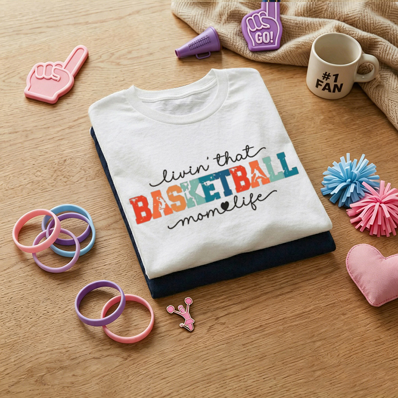 WOMEN'S "Game Day Hoop Life" Retro Basketball Graphic Print 100% Cotton T-Shirt$25.96 USD$36.96 USD