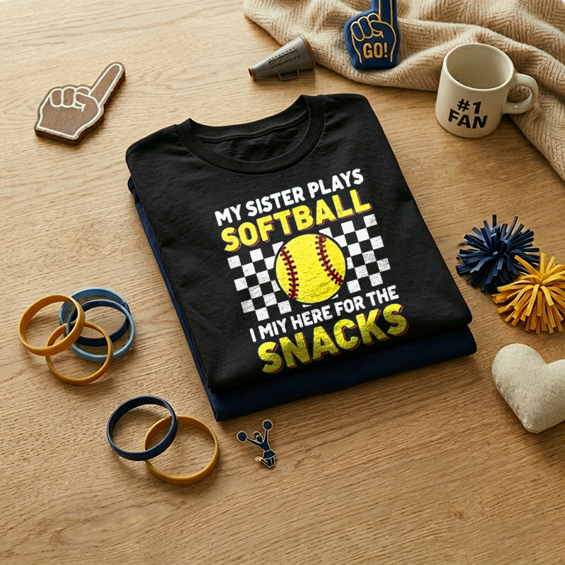 MEN'S My Sister Plays Softball I Miy Here For The Snacks Print 100% Cotton T-Shirt