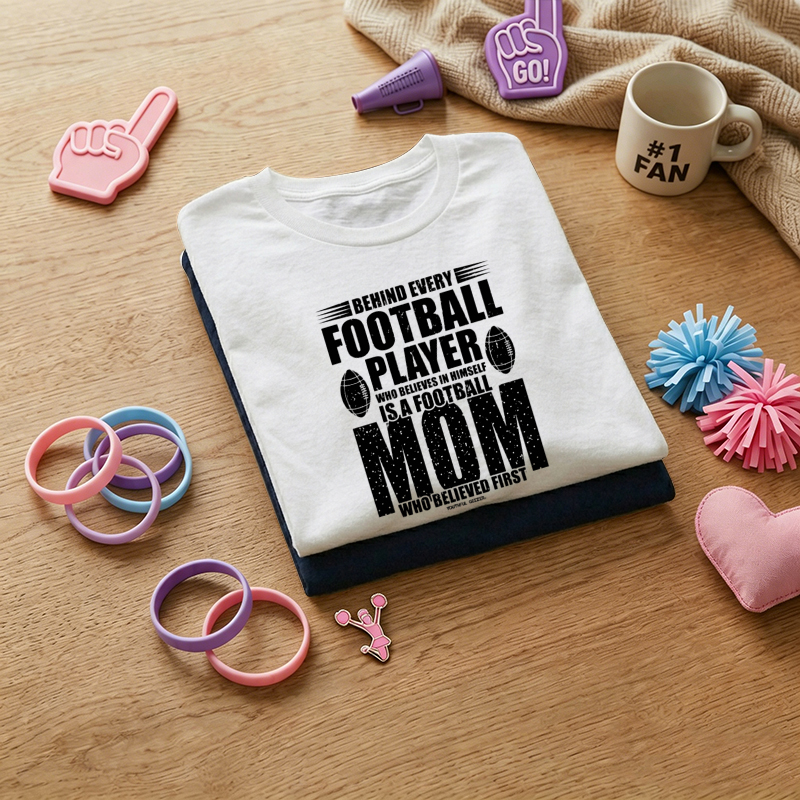 WOMEN'S "Behind Every Football Player" Football Mom Inspirational Graphic 100% Cotton T-Shirt