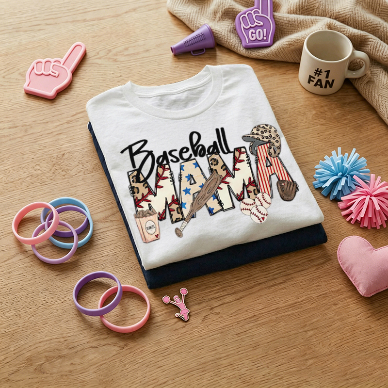 WOMEN'S Baseball MAMA Graphic Letter Print 100% Cotton T-Shirt