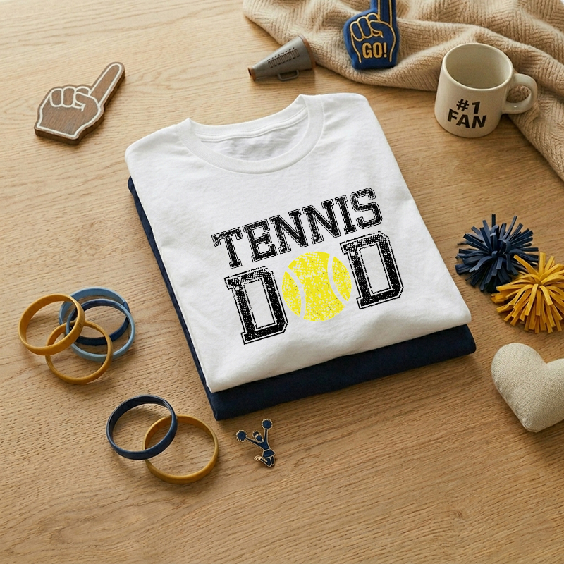 MEN'S "Tennis Dad" Vintage Distressed Tennis Ball Graphic 100% Cotton T-Shirt