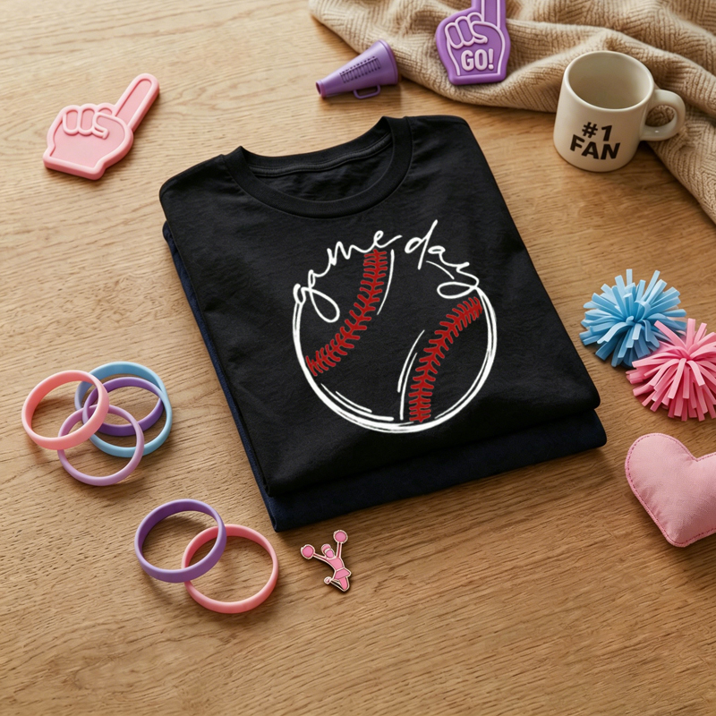 WOMEN'S Baseball Game Day Print 100% Cotton T-Shirt
