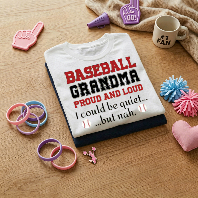 WOMEN'S Baseball Grandma Proud And Loud Print 100% Cotton T-Shirt