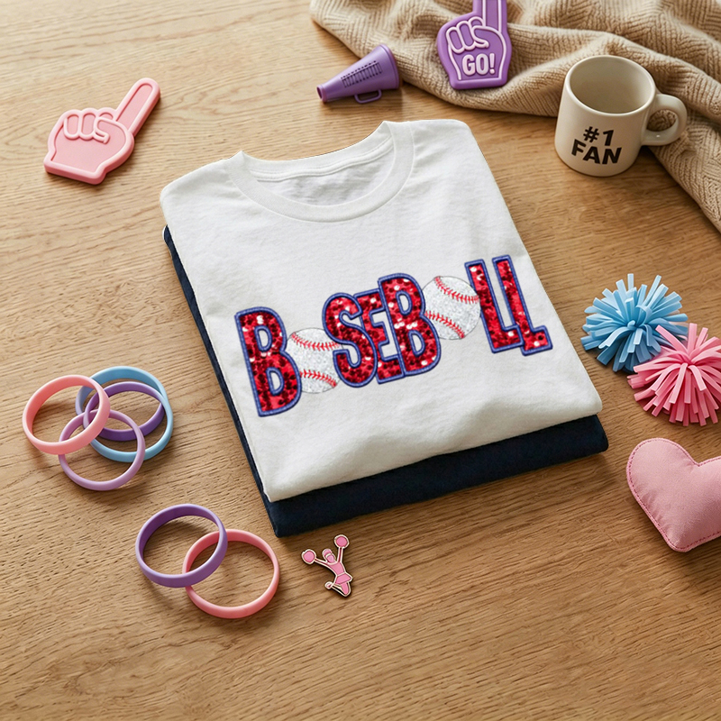 WOMEN'S Baseball Graphic Letter Print 100% Cotton T-Shirt