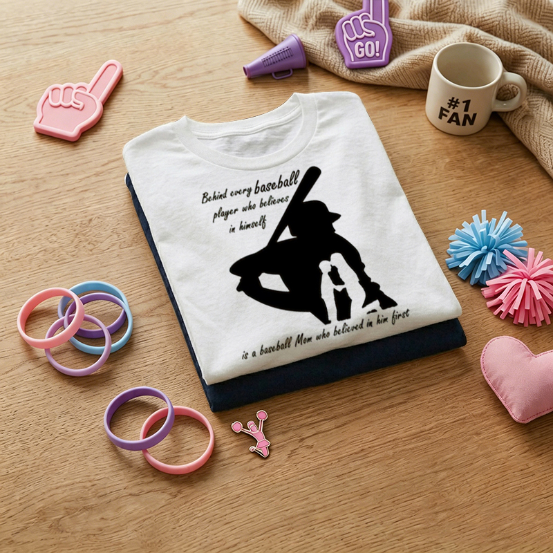 WOMEN'S Baseball Mom Silhouette Print 100% Cotton T-Shirt