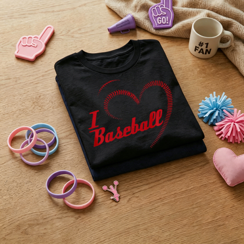 WOMEN'S I Love Baseball Heart Graphic Print 100% Cotton T-Shirt