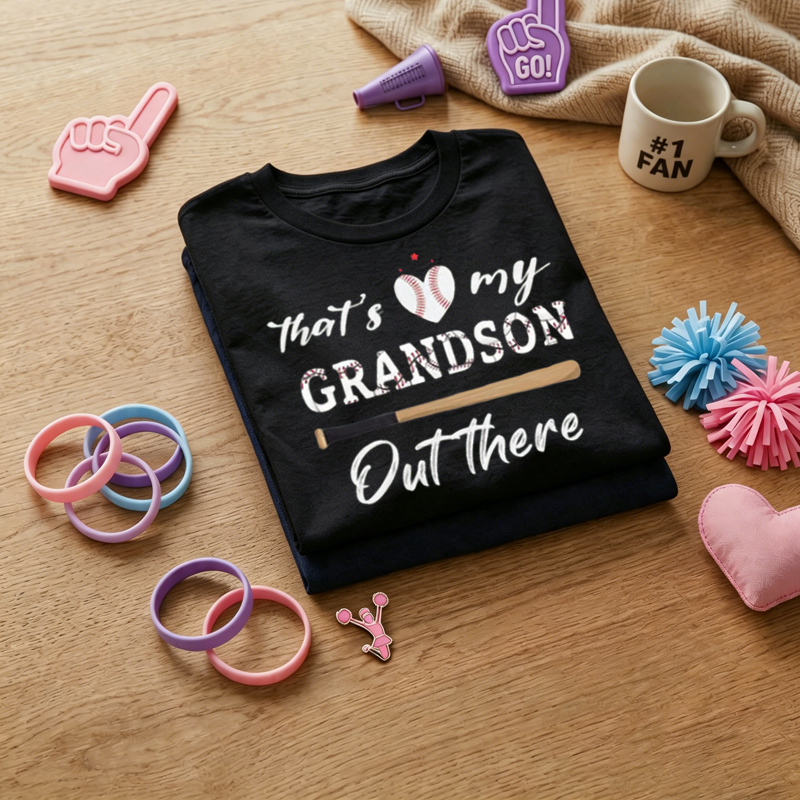 WOMEN'S Heart Baseball That's My Grandson Out There Letter Print 100% Cotton T-Shirt