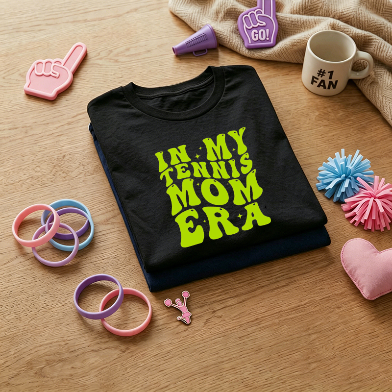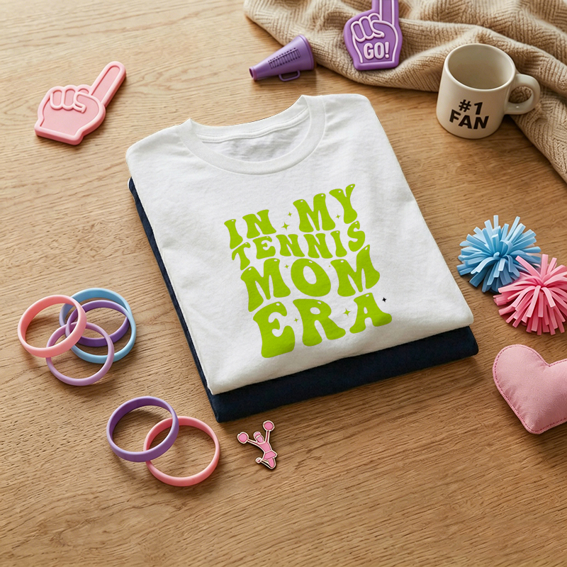 WOMEN'S "In My Tennis Mom Era" Groovy Retro Graphic 100% Cotton T-Shirt