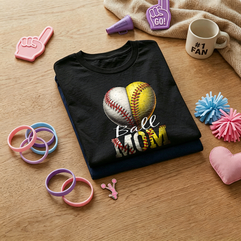 WOMEN'S Softball Baseball MOM Print 100% Cotton T-Shirt