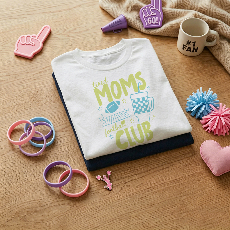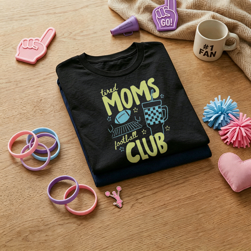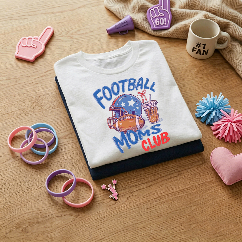 WOMEN'S "Football Champion Mom Support Club" Humorous Print 100% Cotton T-Shirt$25.96 USD$36.96 USD
