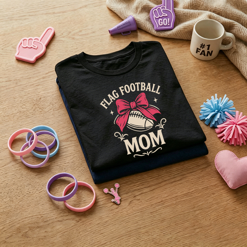 WOMEN'S Football Mom American Flag Distressed Football Graphic 100% Cotton T-Shirt$25.96 USD$36.96 USD