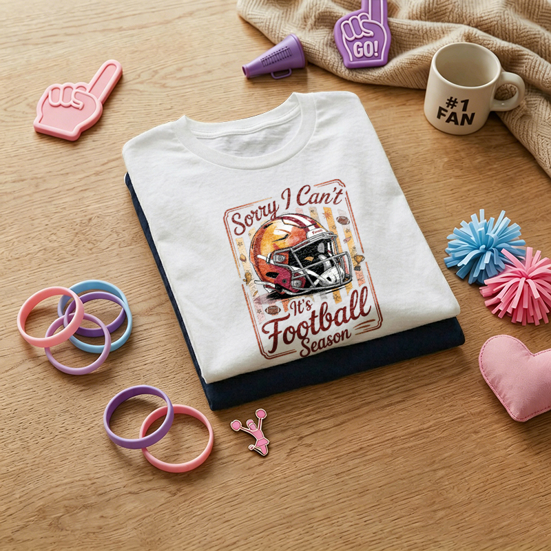 WOMEN'S "Sorry I Can't It's Football Season" Watercolor Helmet Graphic 100% Cotton T-Shirt
