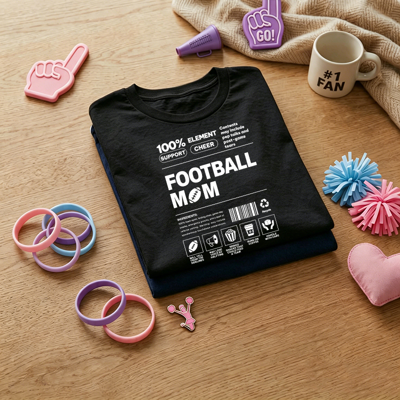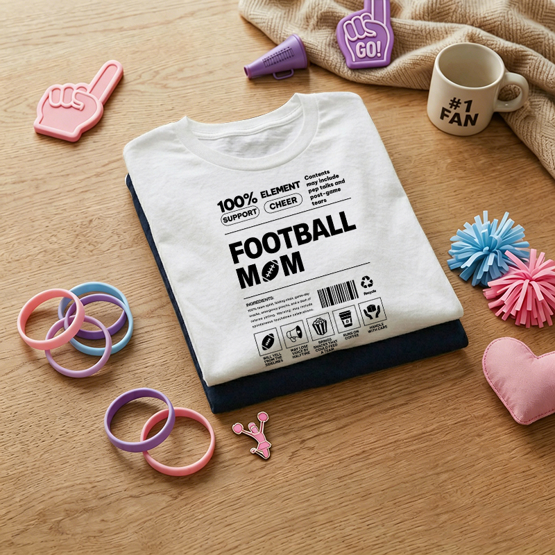 WOMEN'S Football Mom Nutritional Facts Humorous 100% Cotton T-Shirt