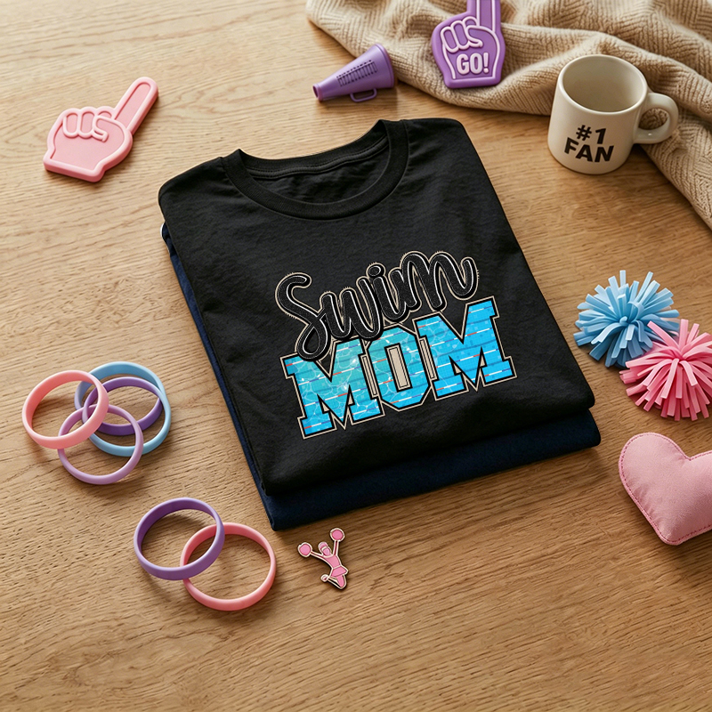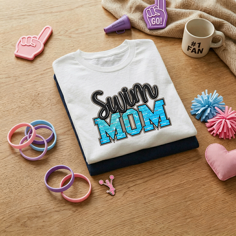 WOMEN'S "Swim Mom" Graphic Print 100% Cotton T-Shirt