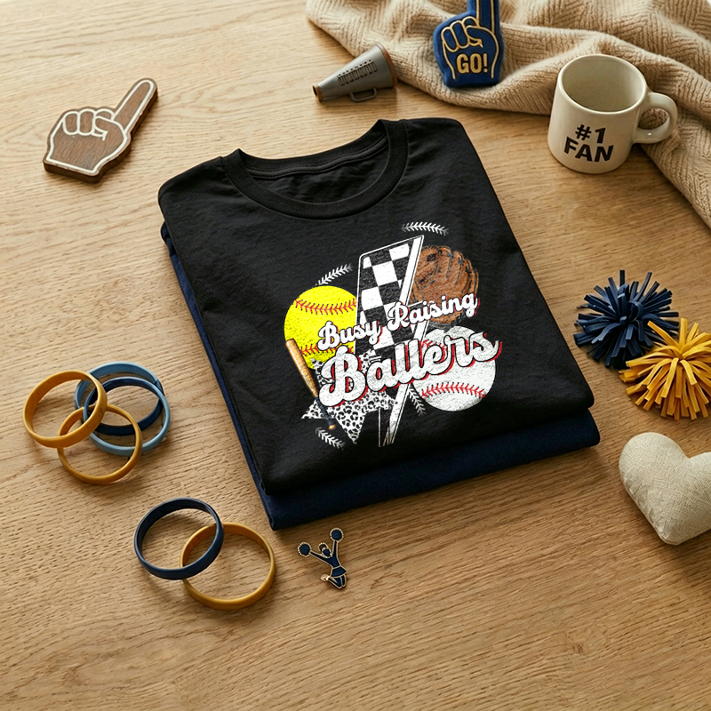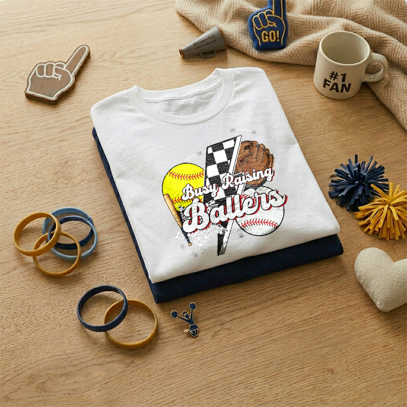 MEN'S Busy Raising Ballers Softball Season Theme Print 100% Cotton T-Shirt