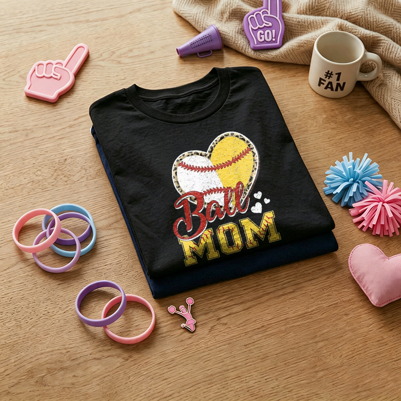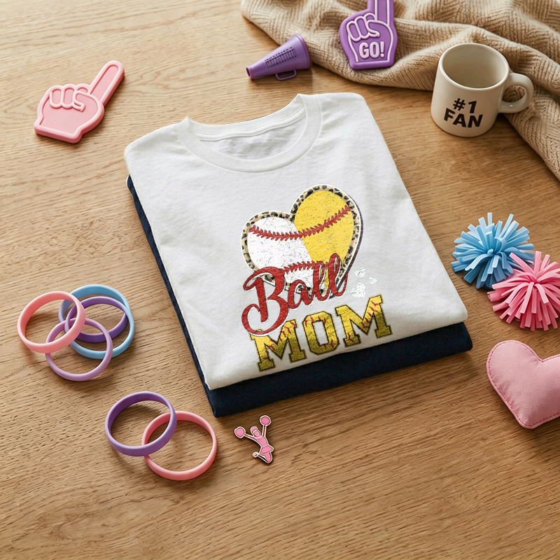 WOMEN'S Heart Shaped Ball MOM Pattern 100% Cotton T-Shirt