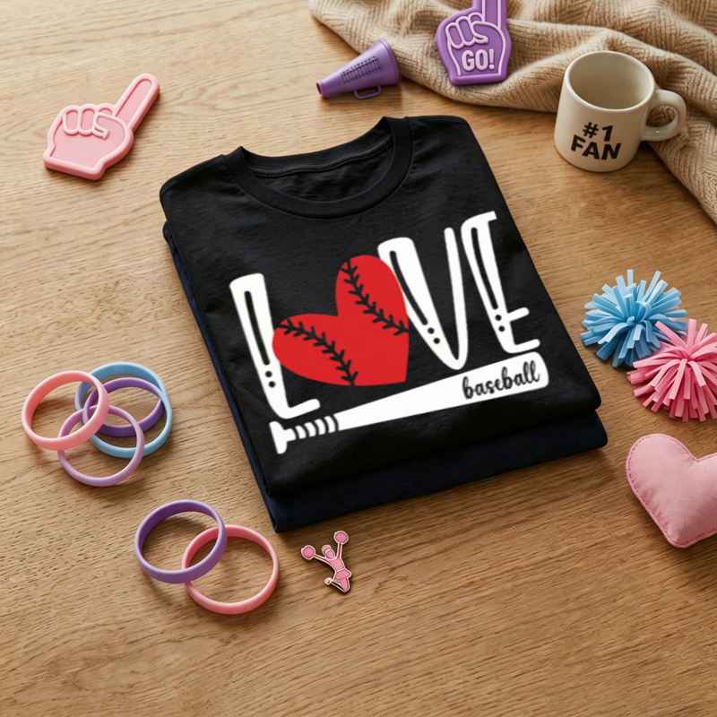 WOMEN'S Heart Shaped Love Baseball Letter Print 100% Cotton T-Shirt