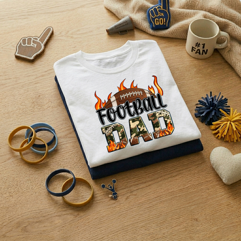 MEN'S "Football Dad" Camouflage Flame Graphic 100% Cotton T-Shirt