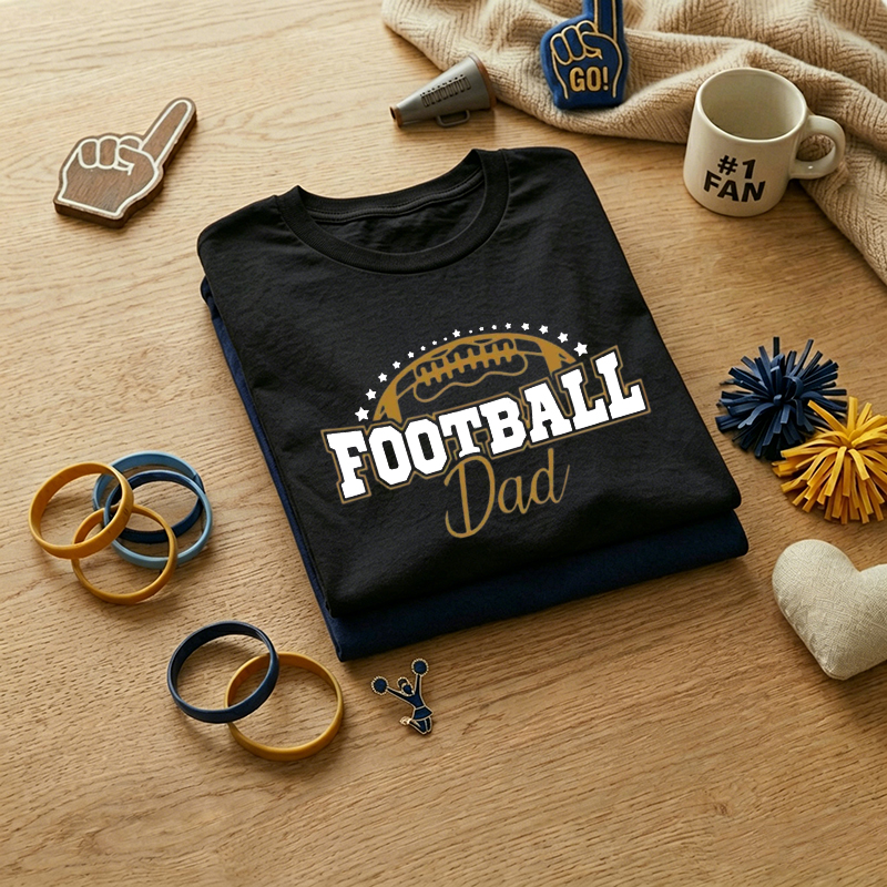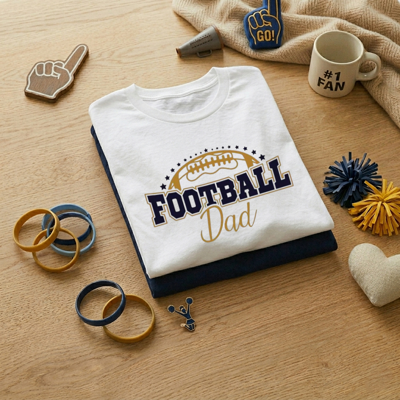 MEN'S "Football Dad" Star & Football Graphic Print 100% Cotton T-Shirt