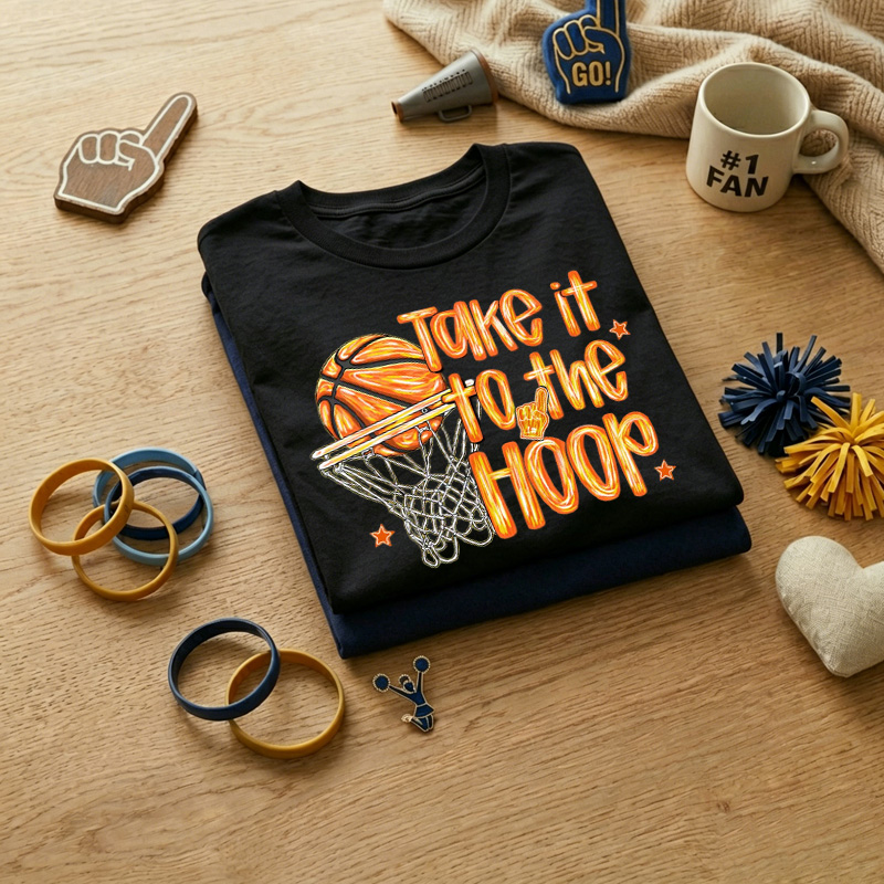 MEN'S "Take It To The Hoop" Fun Basketball Print 100% Cotton T-Shirt