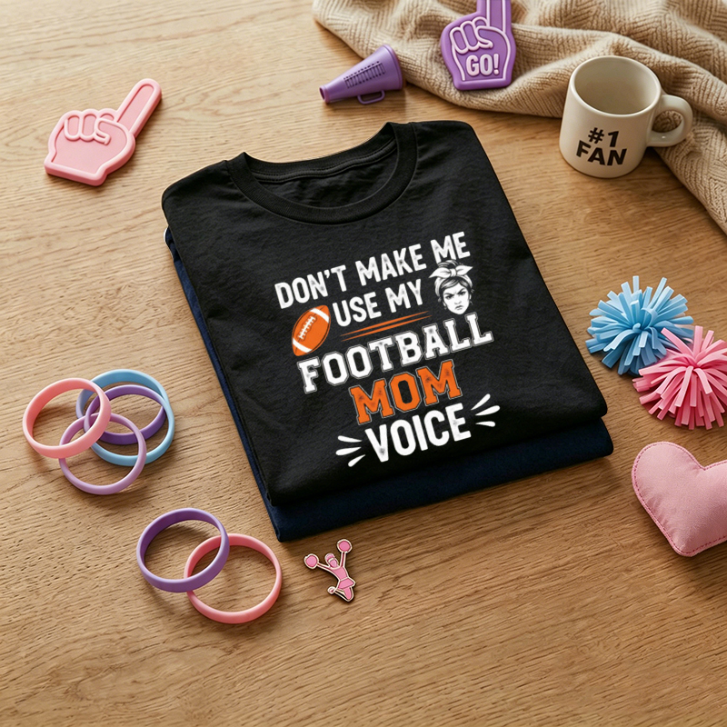 WOMEN'S "Don't Make Me Use My Football Mom Voice" Funny Football Mom Graphic 100% Cotton T-Shirt