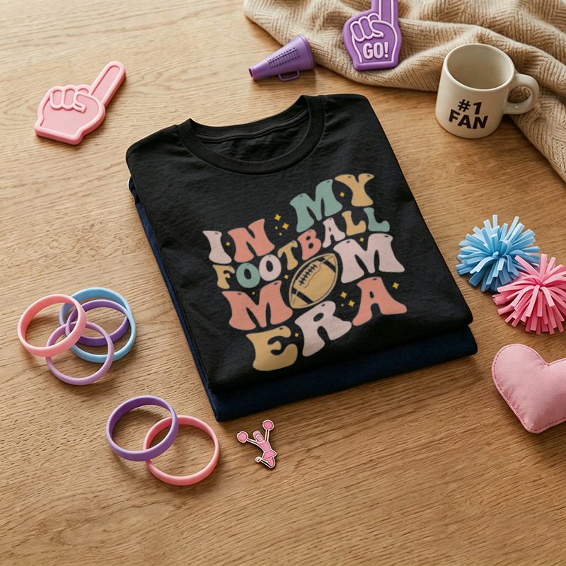 WOMEN'S "In My Football Mom Era" Groovy Retro Football Graphic 100% Cotton T-Shirt