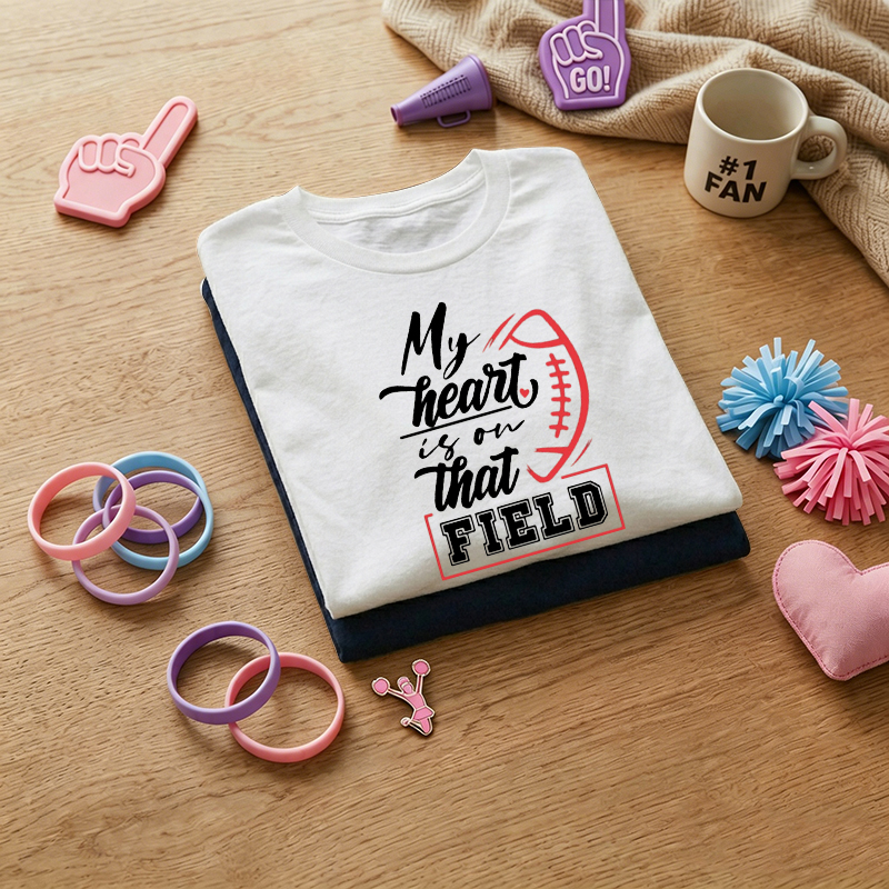 WOMEN'S "My Heart Is On That Field" Football Mom Graphic 100% Cotton T-Shirt