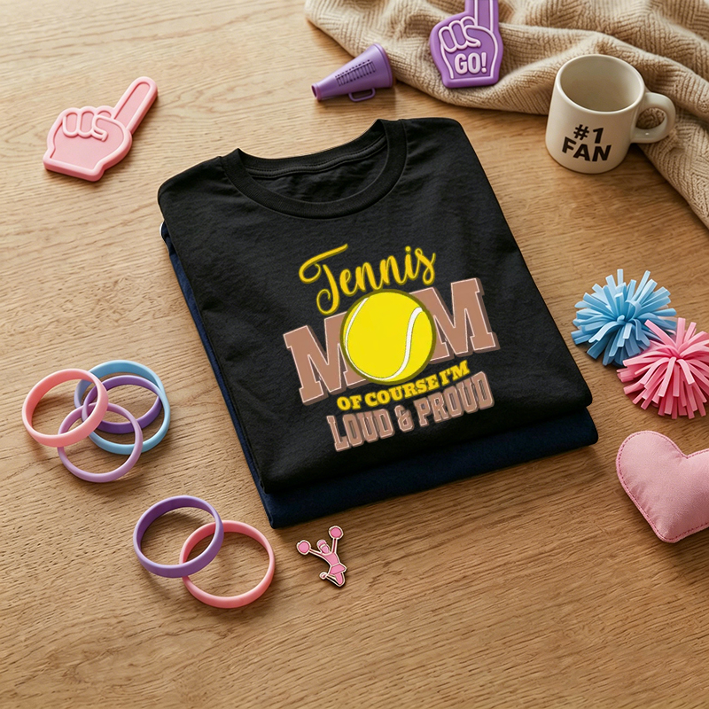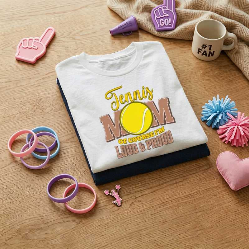 WOMEN'S "Tennis Mom Loud & Proud" Funny Tennis Mom Graphic 100% Cotton T-Shirt