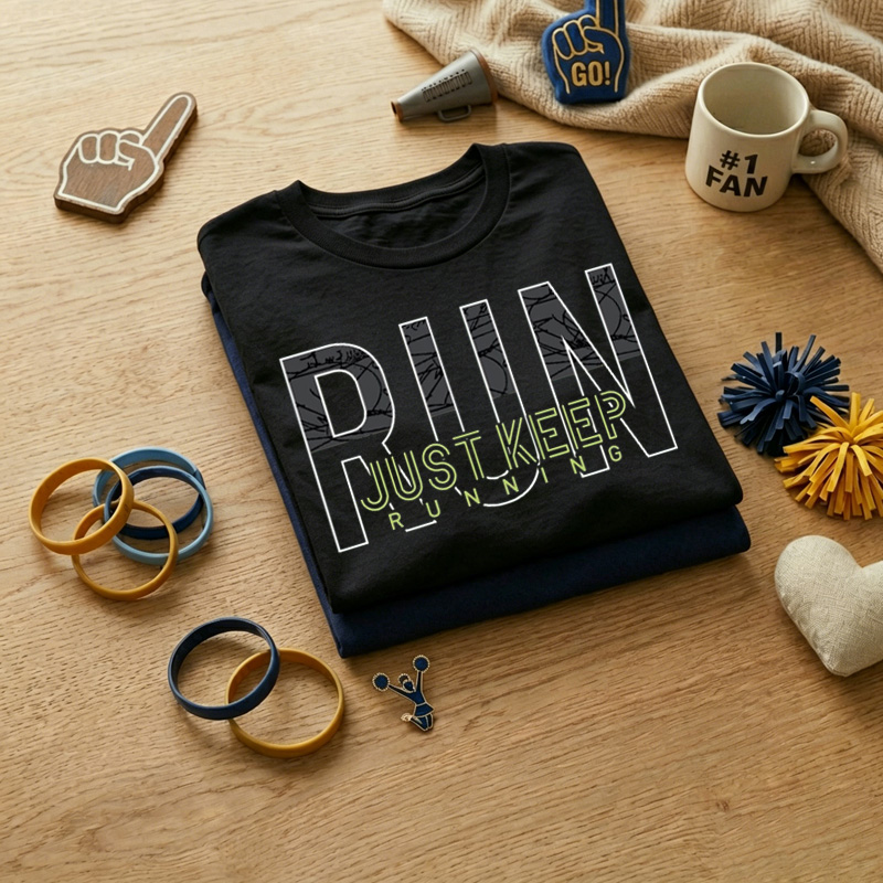 MEN'S "Just Keep Running" Motivational Running Print 100% Cotton T-Shirt