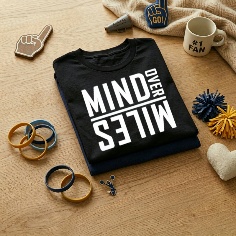 MEN'S "Mind Over Miles" Sports Fan Motivational Print 100% Cotton T-Shirt