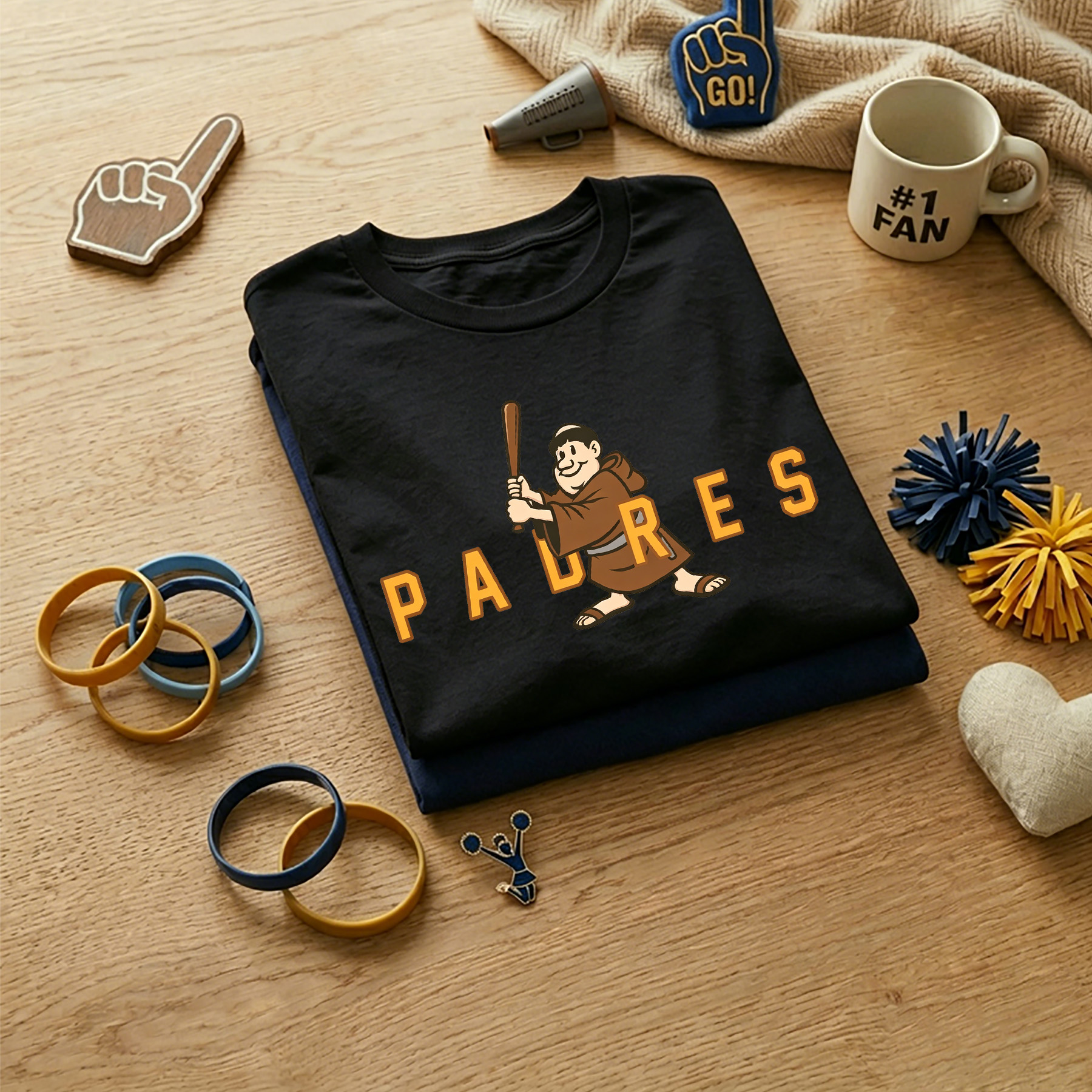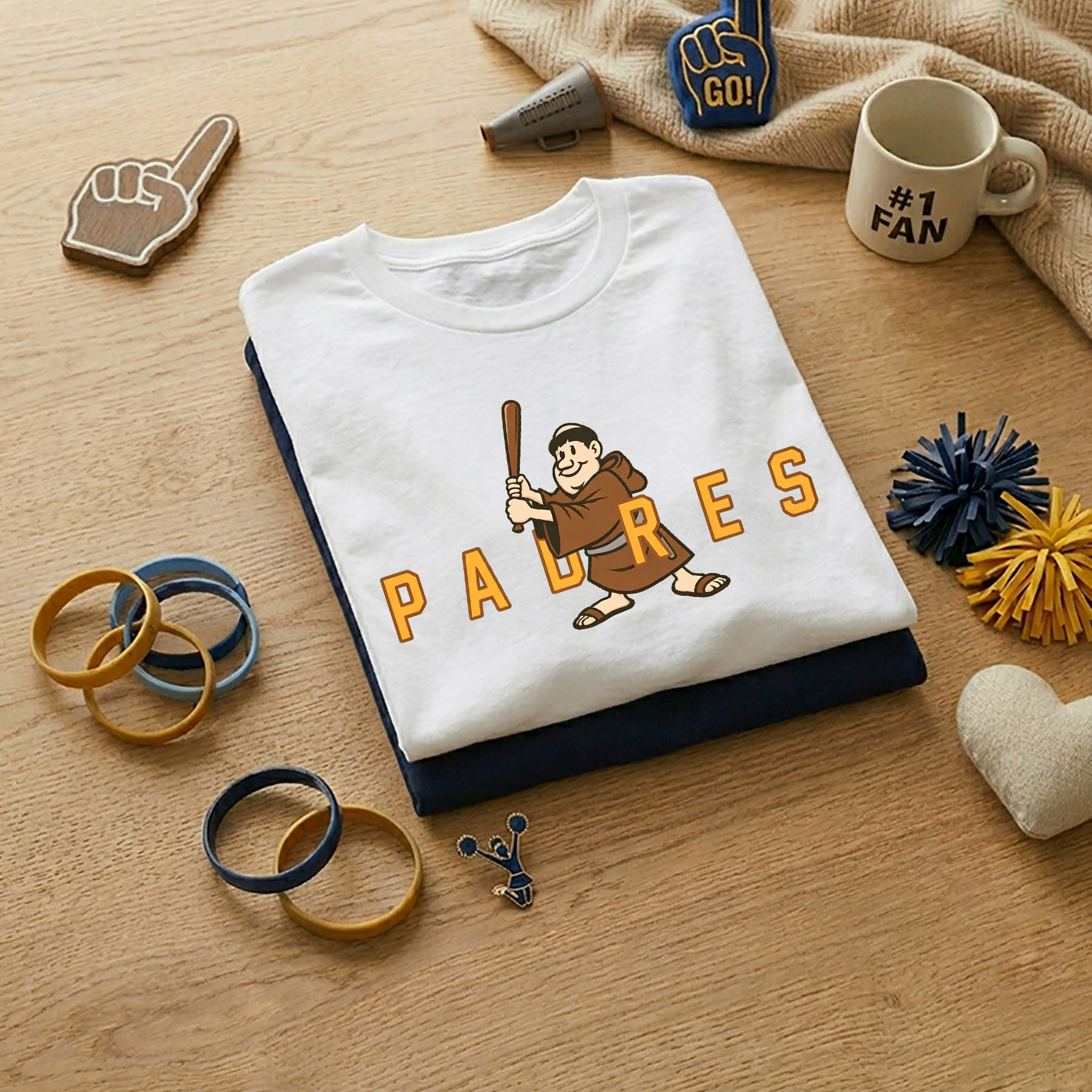 MEN'S "Swinging Friar" Retro Cartoon Baseball Print T-shirt