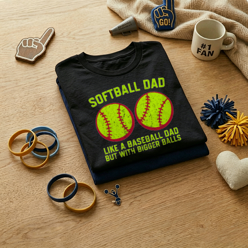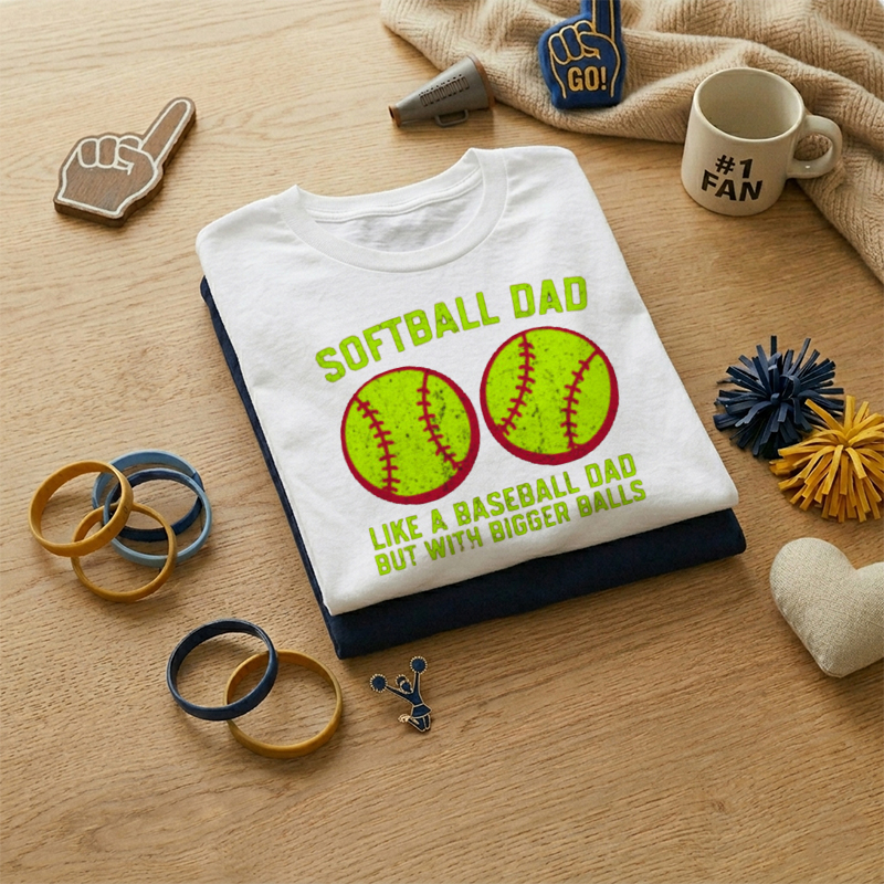 MEN'S Double Softball Shaped "Softball Dad" Funny Slogan 100% Cotton T-Shirt