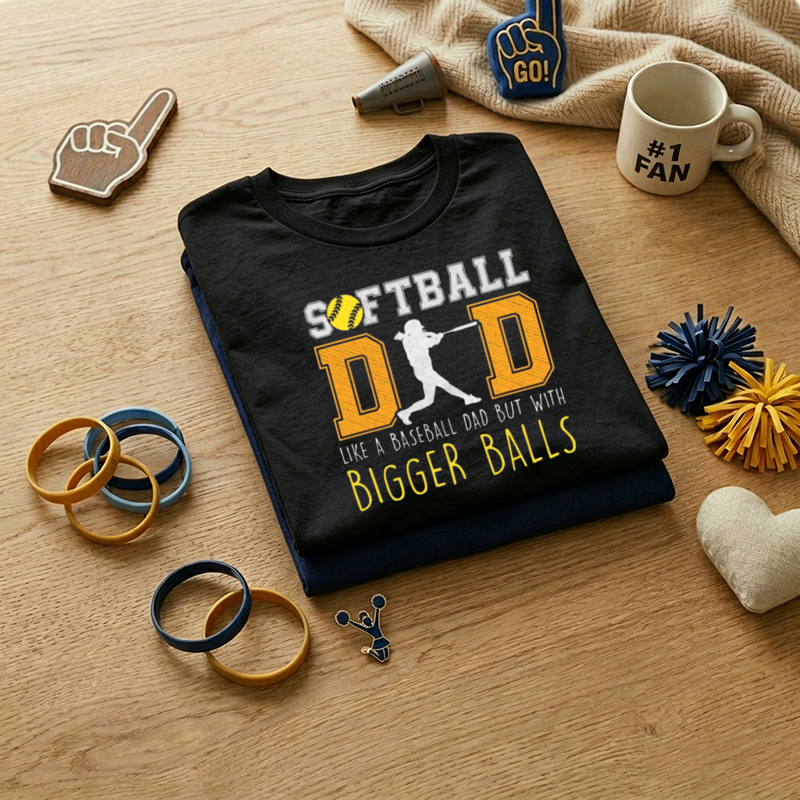 MEN'S Softball Dad Like A Baseball Dad But With Bigger Balls Funny Print 100% Cotton T-Shirt