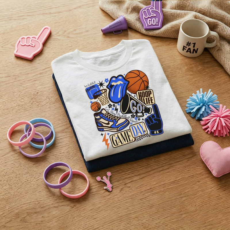 WOMEN'S "Game Day Hoop Life" Retro Basketball Graphic Print 100% Cotton T-Shirt