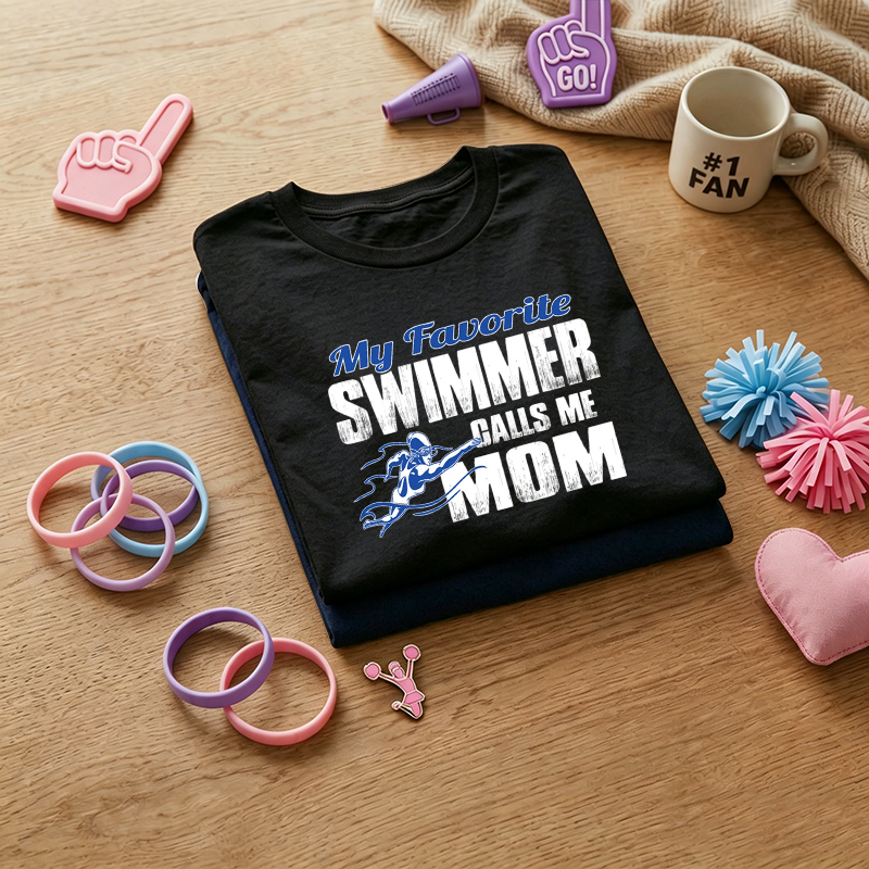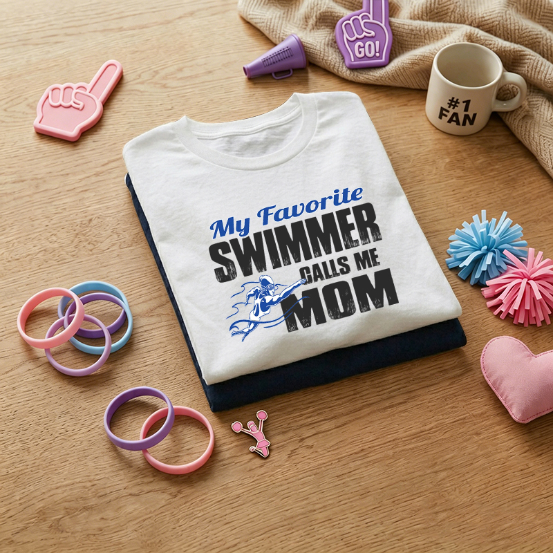 WOMEN'S "My Favorite Swimmer Calls Me MOM" Swim Mom Print 100% Cotton T-Shirt