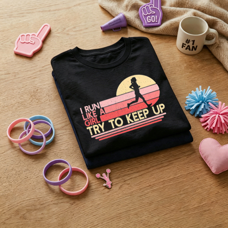 WOMEN'S "Run Like A Girl" Retro Sunset Running Graphic 100% Cotton T-Shirt