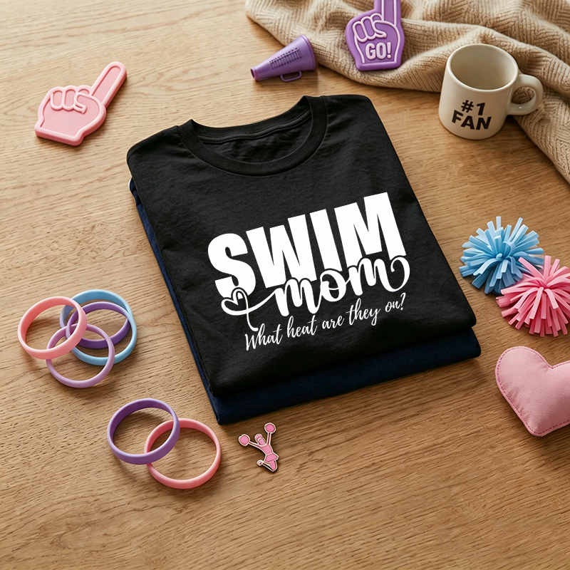 WOMEN'S "What Heat Are They On" Swim Mom Print 100% Cotton T-Shirt