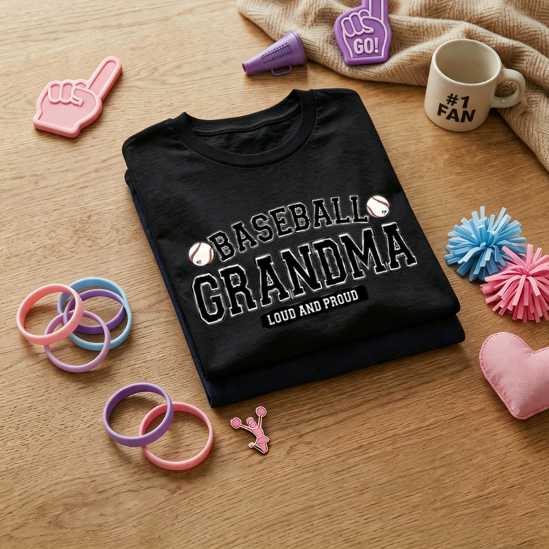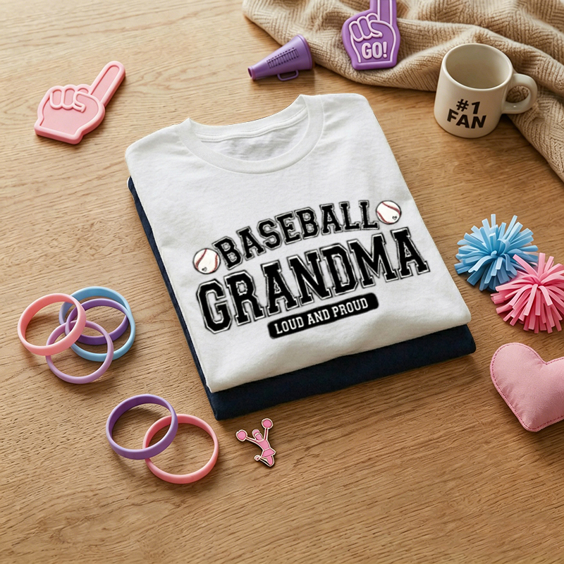 WOMEN'S Baseball Grandma Loud And Proud Print 100% Cotton T-Shirt