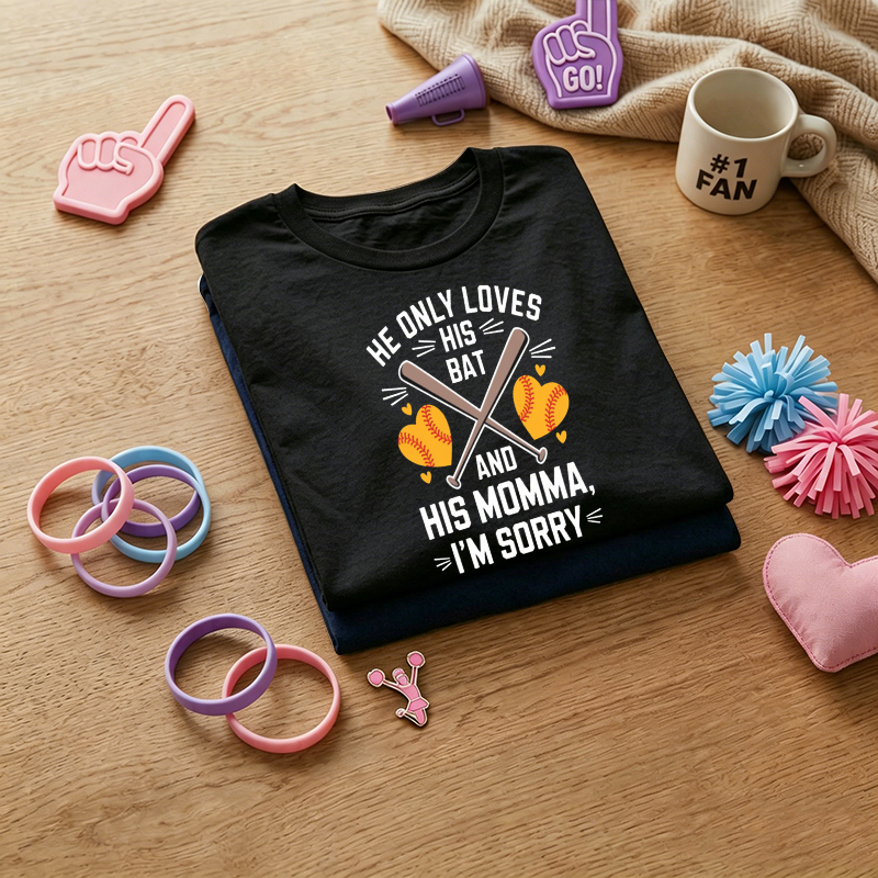 WOMEN'S He Only Loves His Bat And His Mama I'm Sorry Baseball Mom 100% Cotton T-Shirt