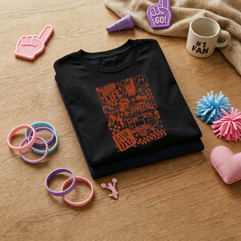 WOMEN'S "Hoop Life Basketball" Retro Game Day Print 100% Cotton T-Shirt