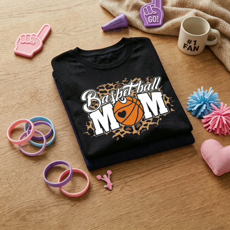 WOMEN'S "Basketball Mom" Proud Sports Mom Print 100% Cotton T-Shirt
