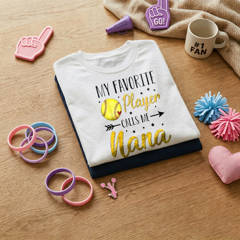 WOMEN'S My Favorite Player Calls Me Nana Print Funny Softball 100% Cotton T-Shirt