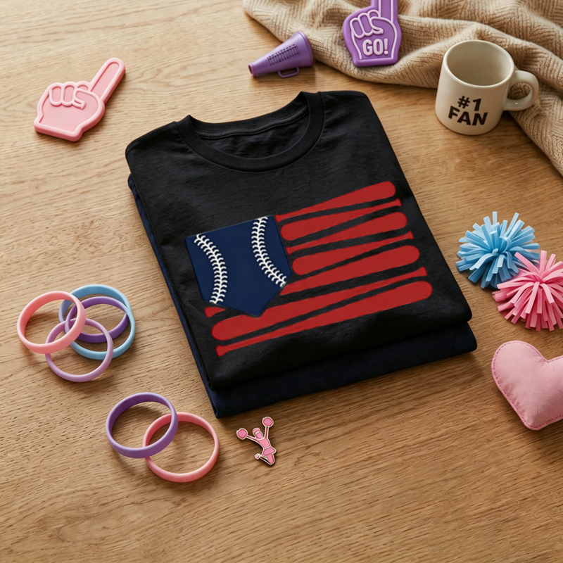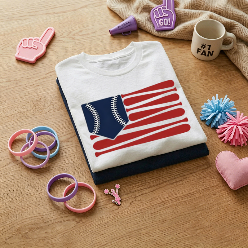 WOMEN'S Baseball Elements Flag Print 100% Cotton T-Shirt$30.96 USD$36.96 USD