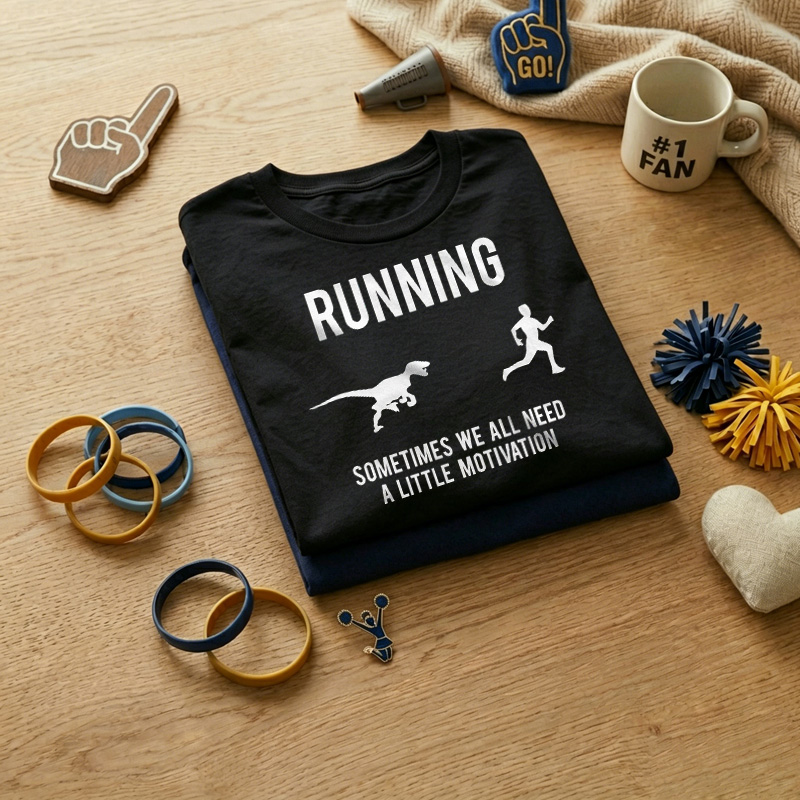 MEN'S "Dinosaur Chasing Runner Motivation" Humorous Running Graphic 100% Cotton T-Shirt
